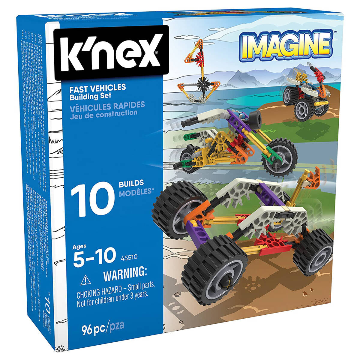 K'nex Imagine Fast Vehicles 10 Model Building Set lets you create 10 different models including a motorcycle, quad, car and more by following the step-by-step guide. Encourages your child's development across a range of educational aspects, helping to engage their imagination and curiosity.