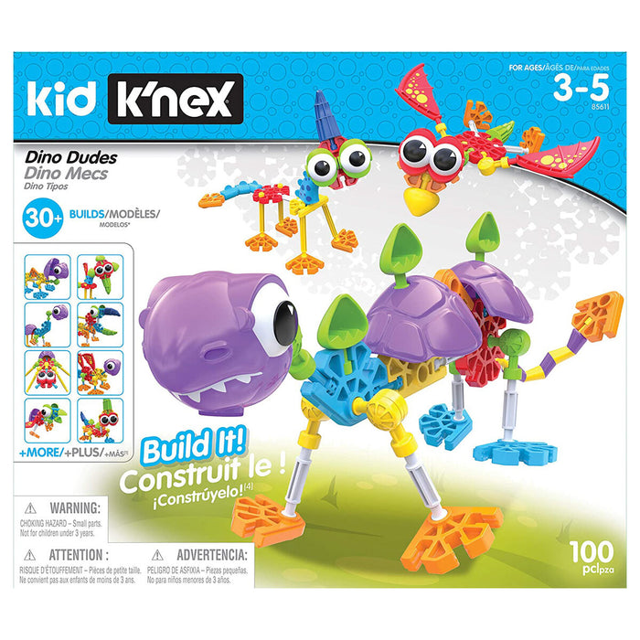 • Create 30+ amazing models with the Kid K'nex Dino Dudes Building Set.
